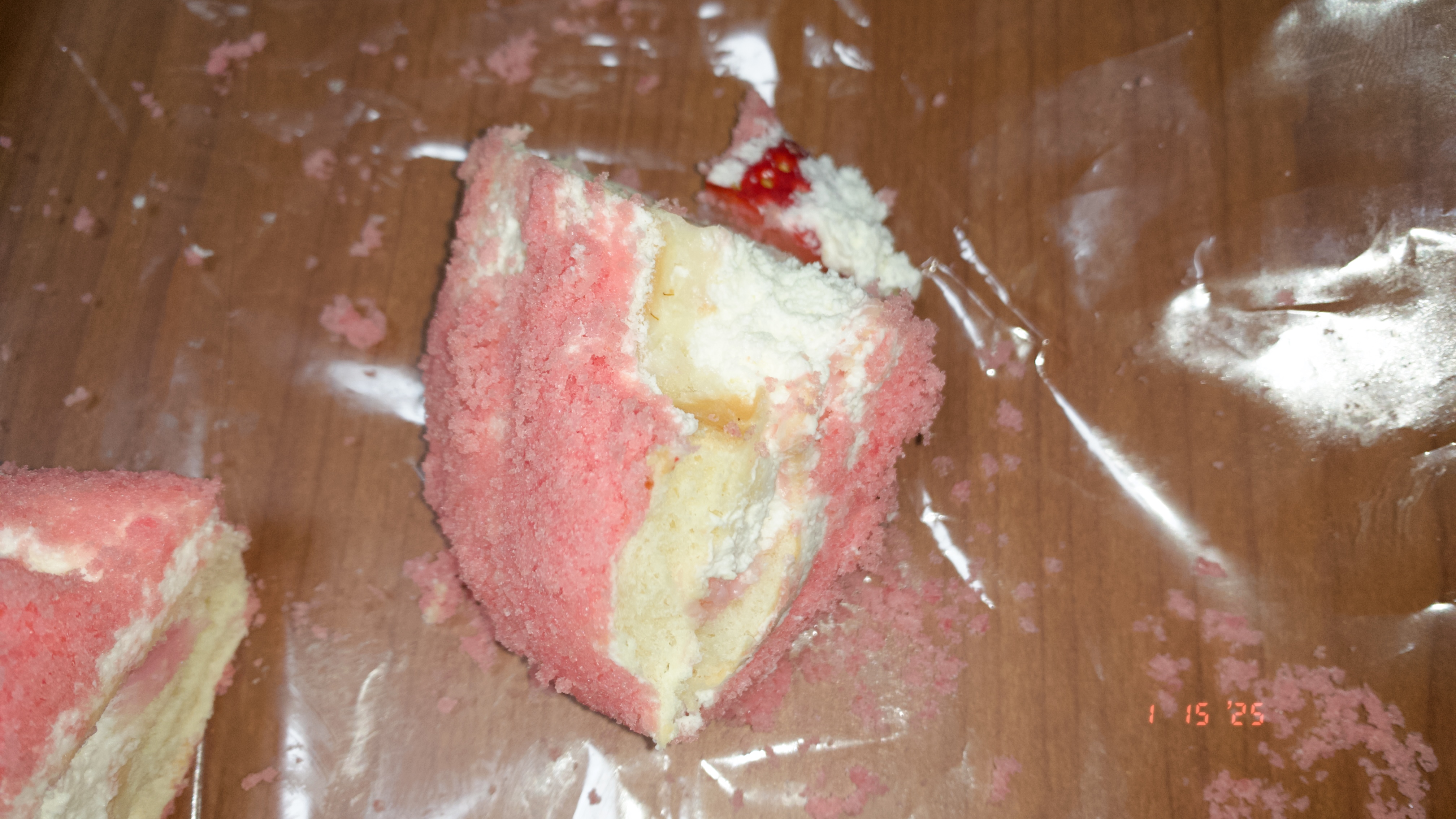 포장지를 뜯자마자 딸기 디저트 특유의 인공 딸기 향이 납니다.